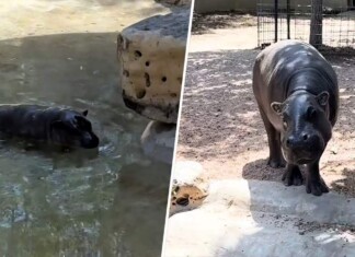 Recalcitrant Baby Hippo Refuses to Leave the Pool Unless it Sees a ‘Mom Stare’ – (WATCH)