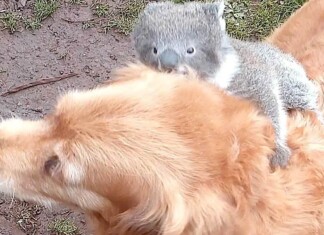 Man is Shocked to Find His Dog Giving a Baby Koala a Piggyback Ride