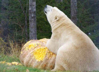 Polar Bear Gleefully Eating a 1,400-Pound Pumpkin Donated for His Dinner iS a Sight to Behold