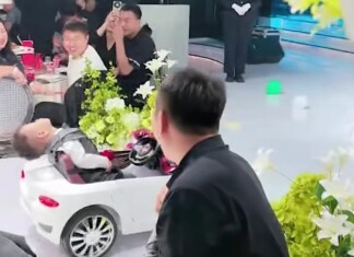 Tiny Ring Bearer Dozes Off in Mini Sports Car ‘Driving’ Down the Aisle During Wedding – WATCH