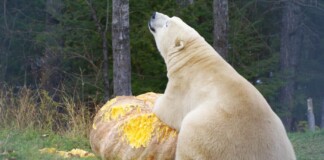 Polar Bear Gleefully Eating a 1,400-Pound Pumpkin Donated for His Dinner iS a Sight to Behold