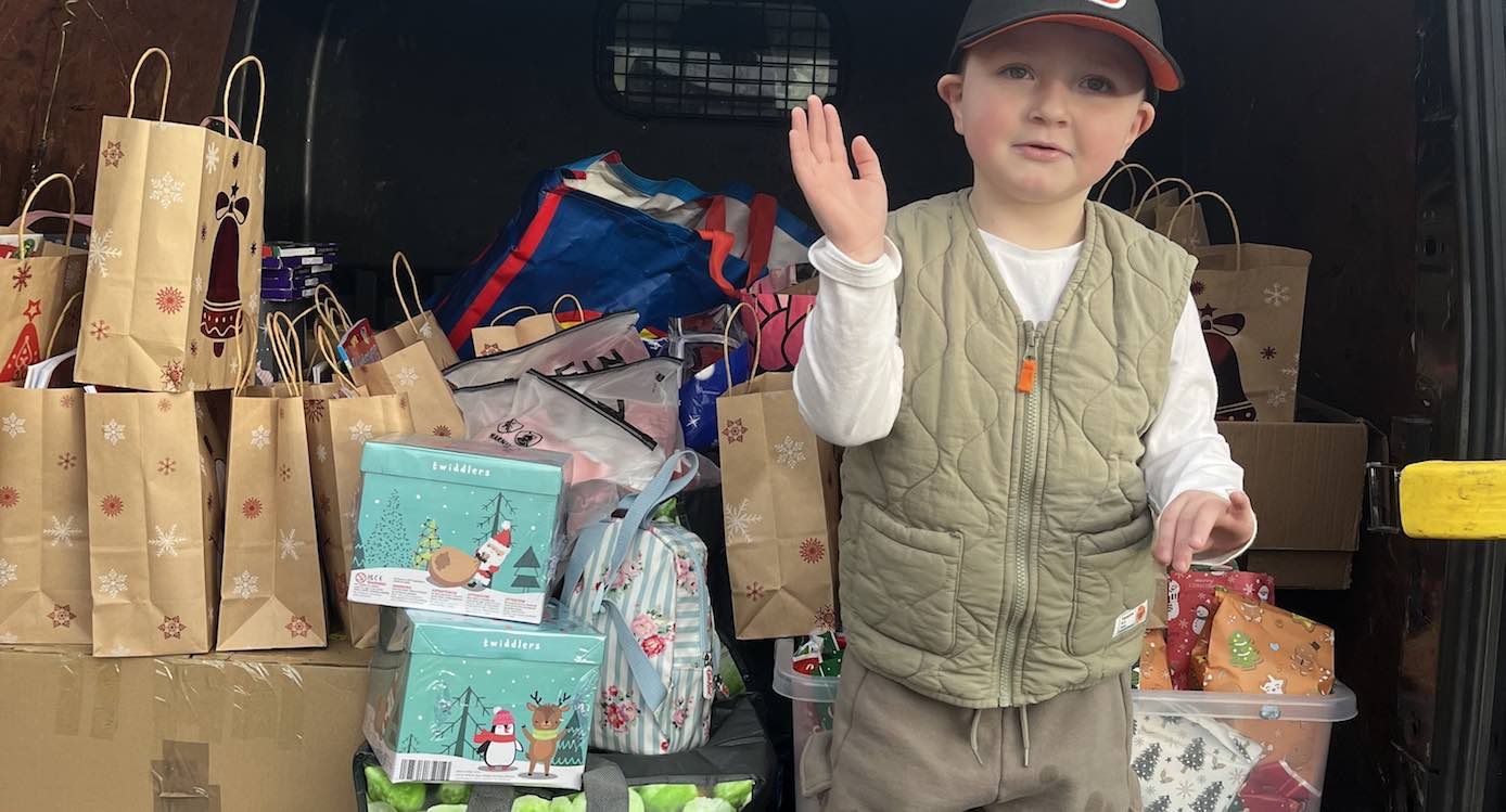 A four-year-old boy with leukemia has dropped off more than 400 bags of Christmas presents at the children’s hospitals where he received care.