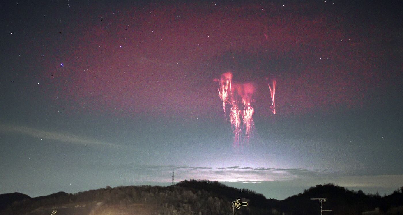 This time, it was triggered by a negative lightning strike of 303 kA, according to SWNS news. The lightning occurred above the Cinque Terre in Liguria, 186 miles (300 km) away from his location—with a calculated diameter measuring 200 km (124 miles).