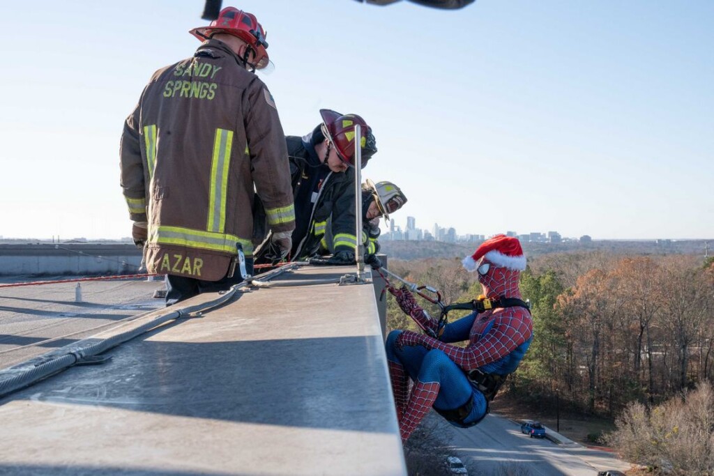 In place of decking the halls, the men and women of the Sandy Springs Fire Department (SSFD) link up with Santa, and rappel down the walls of Children’s Healthcare of Atlanta to surprise infirm kids who can’t leave their rooms.