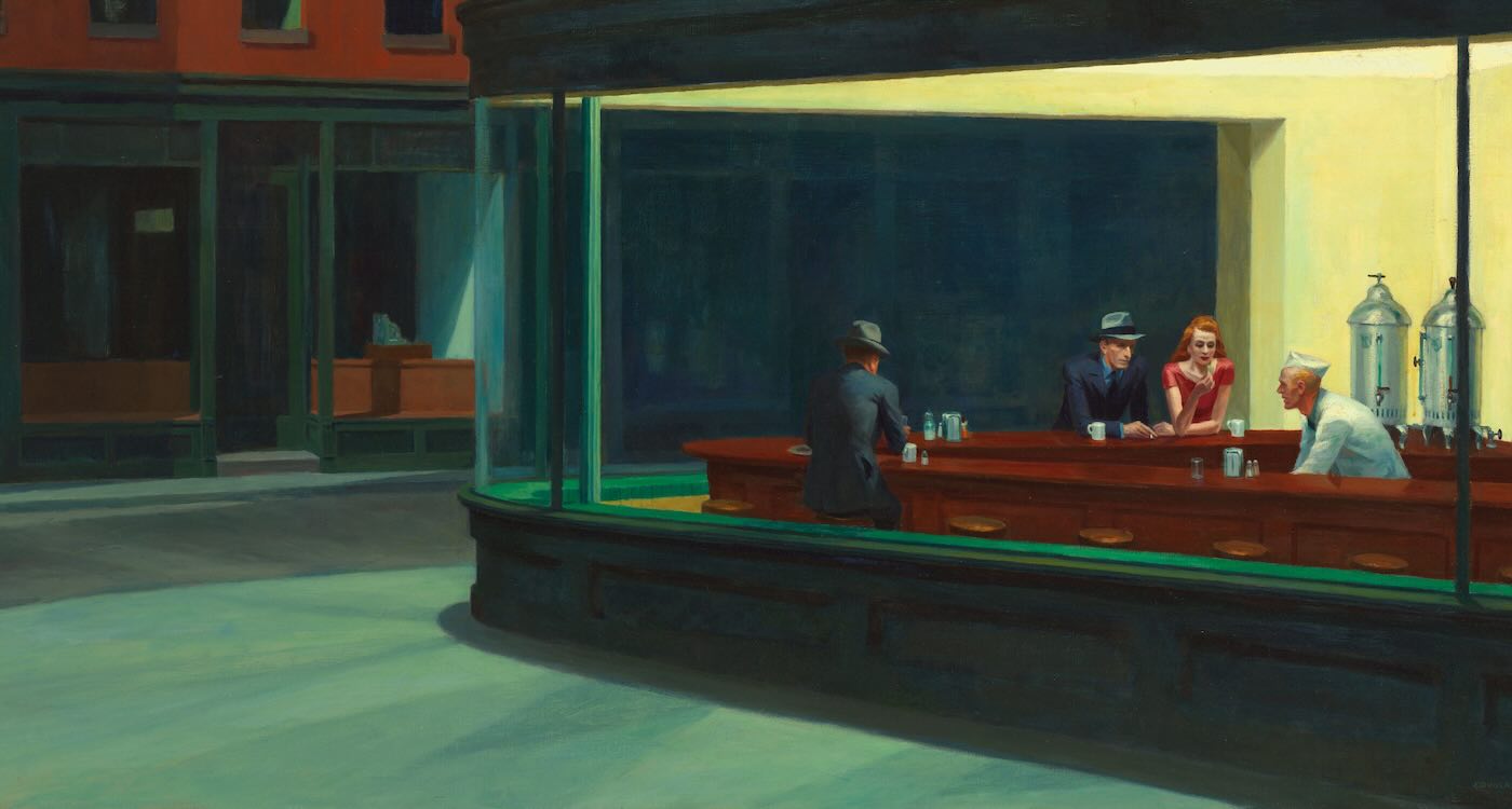 Image by: Nighthawks by Edward Hopper, 1942 (cropped)