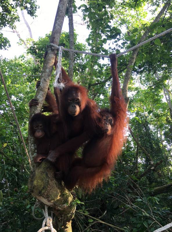 On January 10th, Mary, Jojo, and Bonti embarked on a 10-hour journey by car and boat to regain their forest freedom. All three orangutans confidently and eagerly ventured out into the forest upon release, heading straight up into the canopy to begin their new life together.