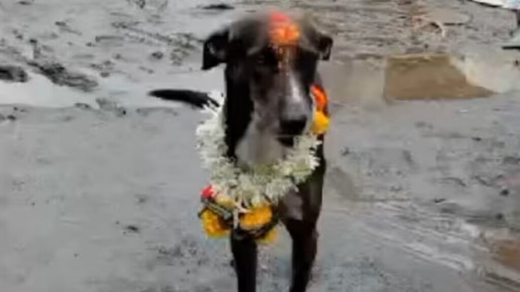 Yamagarni village in the Karnataka state of India recently witnessed a strange sight. A jubilant crowd paraded a black dog covered in garlands through the streets until they reached a feast prepared in its honor.