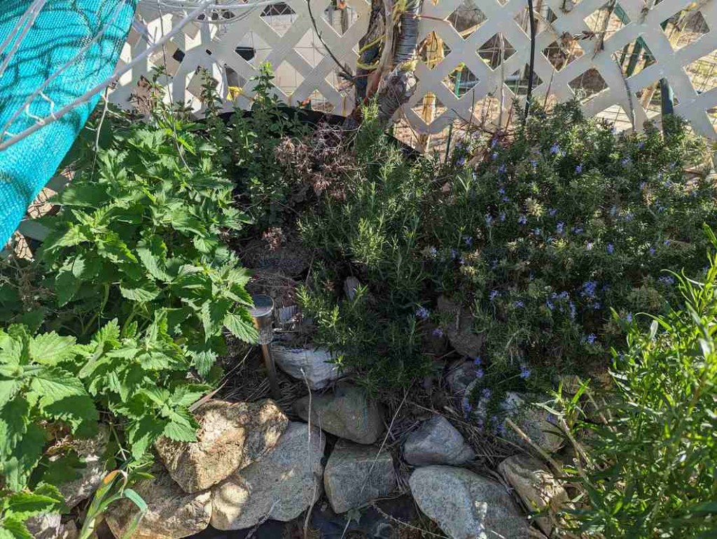 Richards’ perennials have exploded into life thanks to this deluge, including oregano, goji berries, and cat mint.