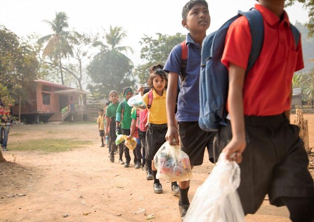 That’s because prior to when the school was opened in June 2016, local families and village communities in the state of Assam commonly burned plastic waste as a means of keeping warm and fueling fires.